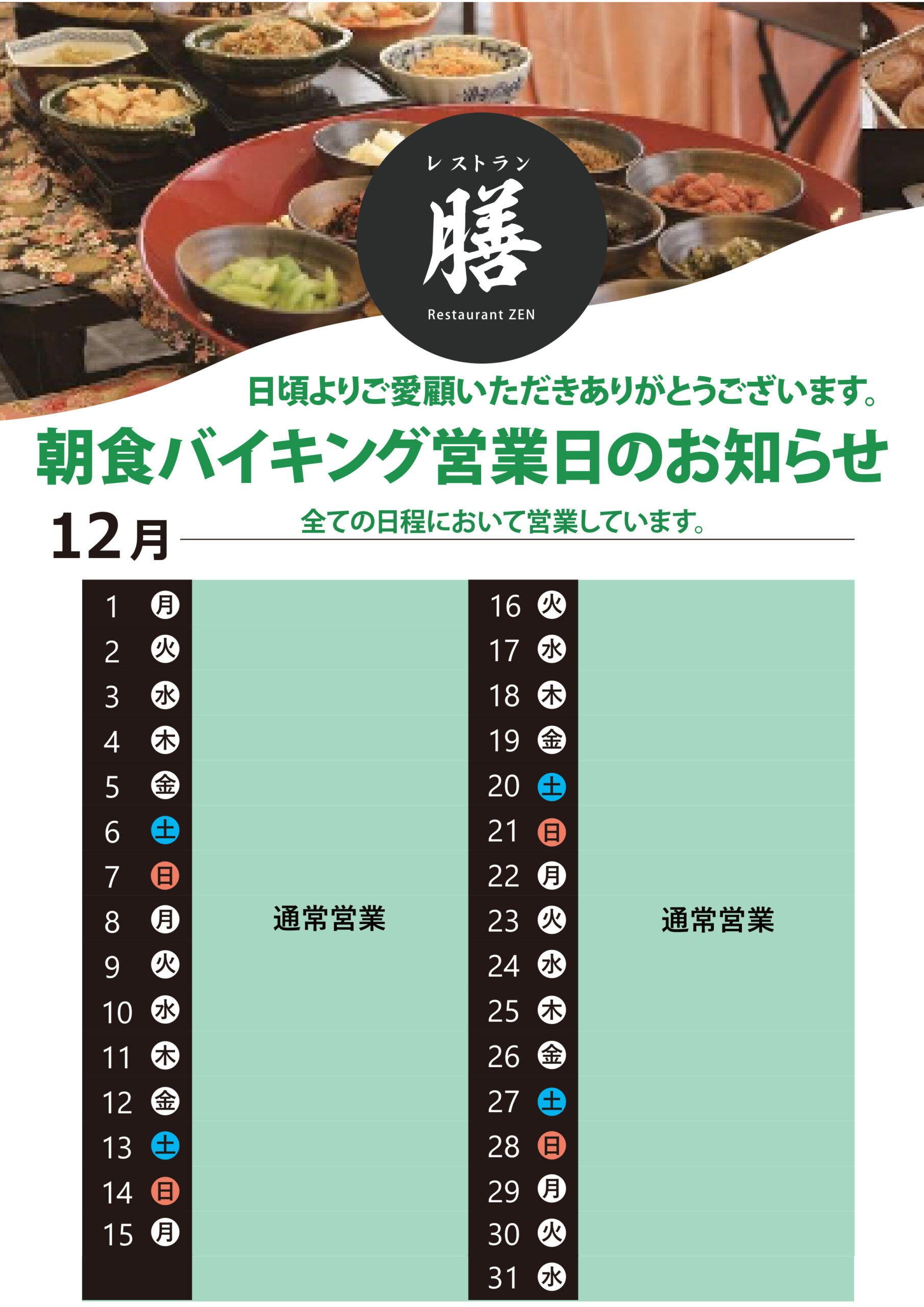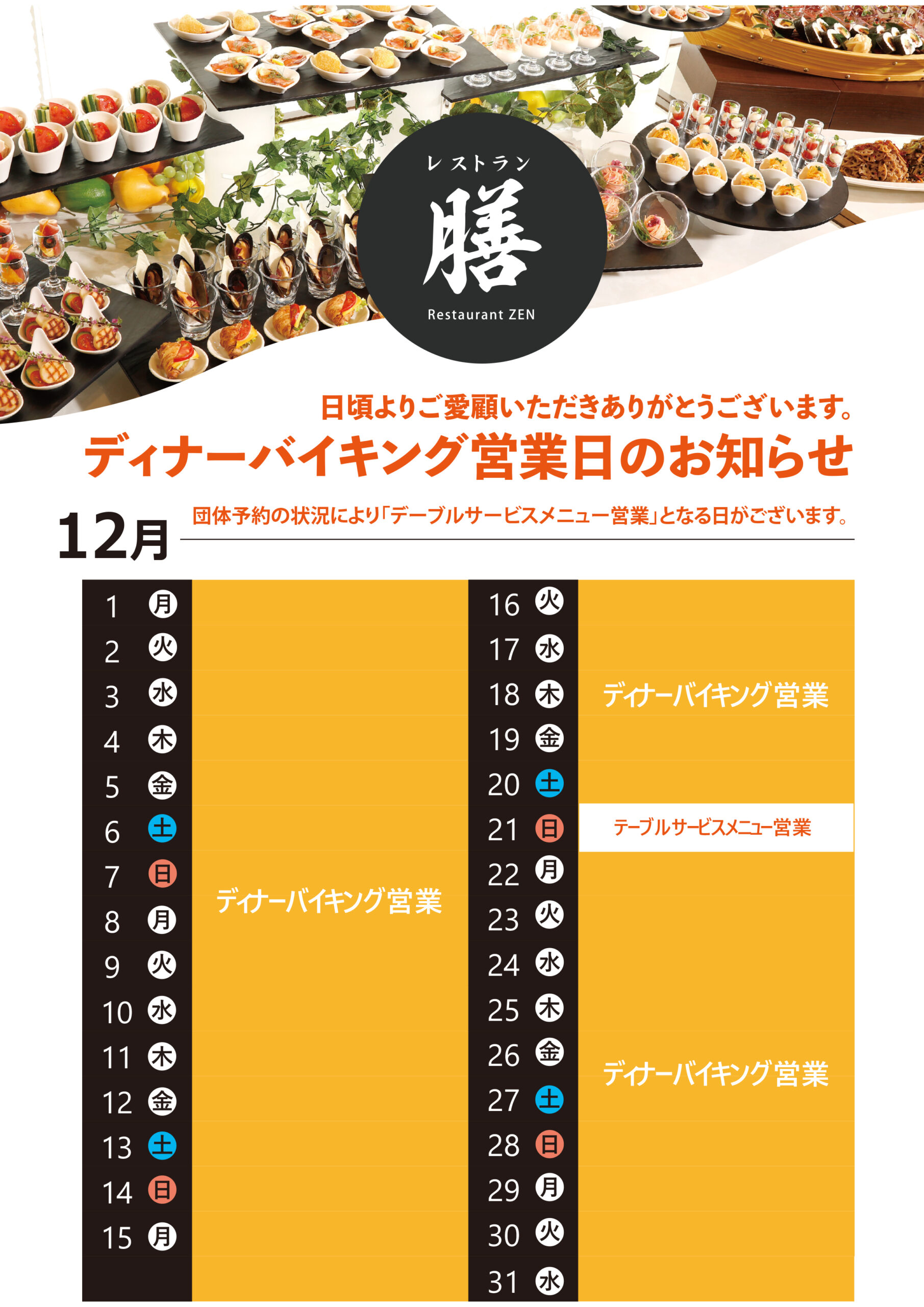 11月・12月のディナーバイキング/朝食バイキングのスケジュールをお知らせします。